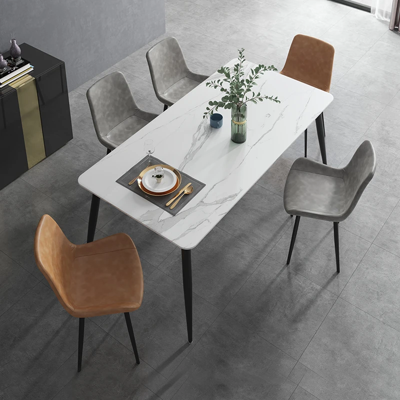 フレンチビンテージ風 厚手のロックプレートダイニングテーブル&チェアセット モダンシンプルでラグジュアリー 小型住宅に最適な長方形テーブル
