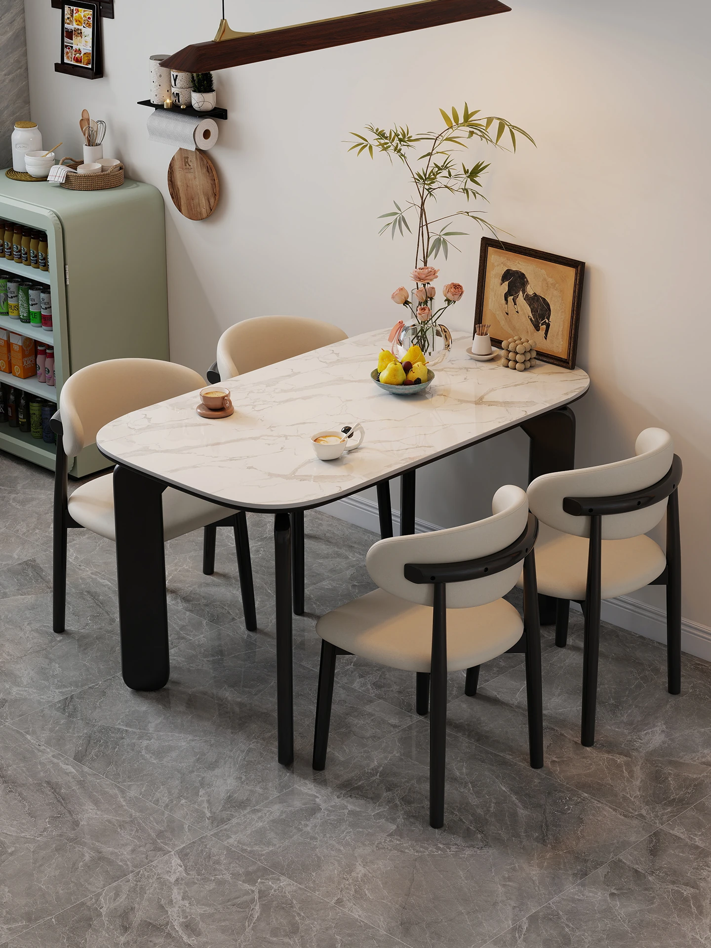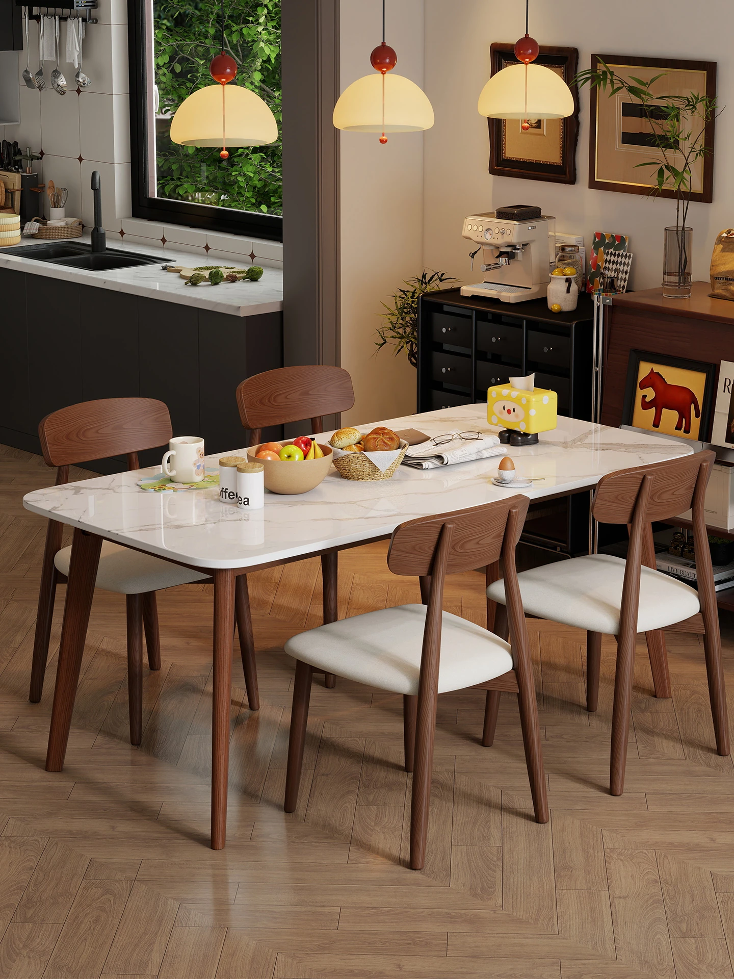 モダンでシンプルな岩板ダイニングテーブルセット|実木製|小型住宅向け|ラグジュアリーな長方形テーブル|家族や友人との食事に最適!