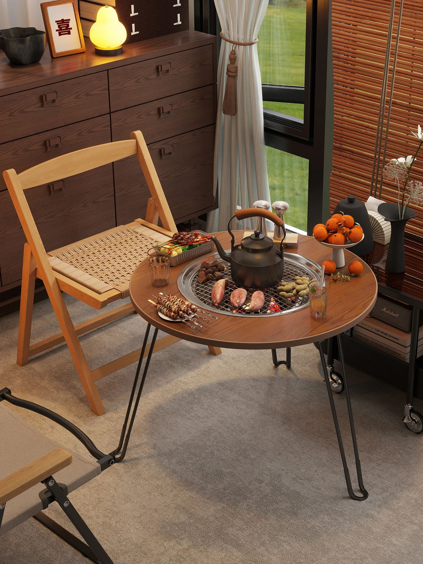 囲炉裏でのお茶と焼き肉を楽しむ!新しい家庭用バーベキューセット - 折りたたみ式アウトドアバーベキューグリル&キャンプ用テーブル。温かな火と共に、特別なひとときをお楽しみください!
