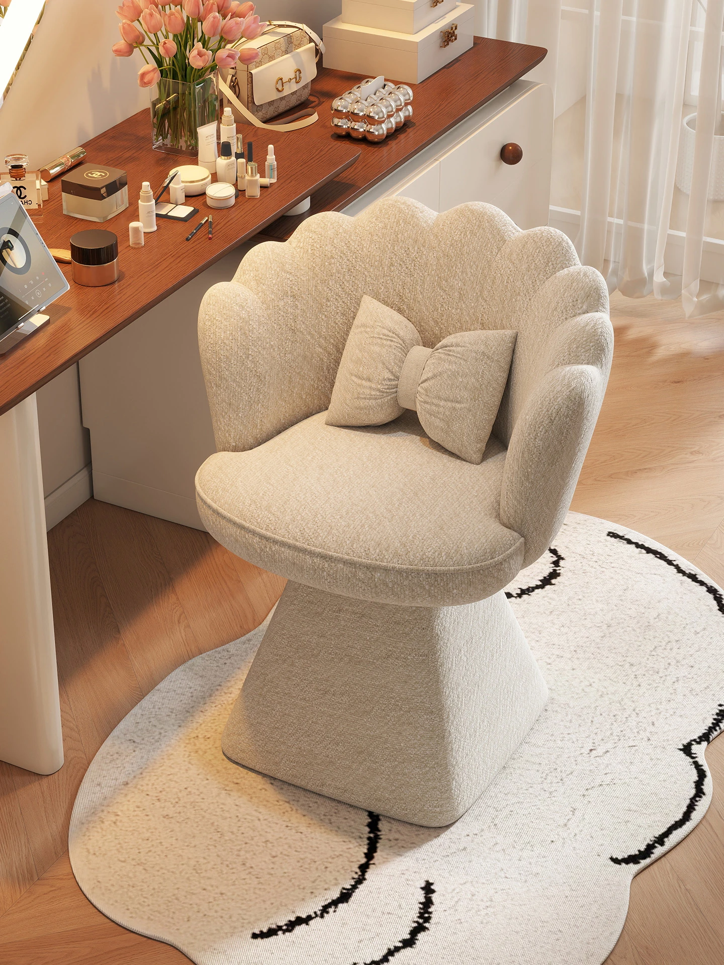 エレガントな回転式化粧台スツール - 女性の寝室にぴったりなフレンチスタイルの高級化粧椅子。おしゃれなクローゼットやドレッサーに最適!あなたの美を引き立てるアイテムです。