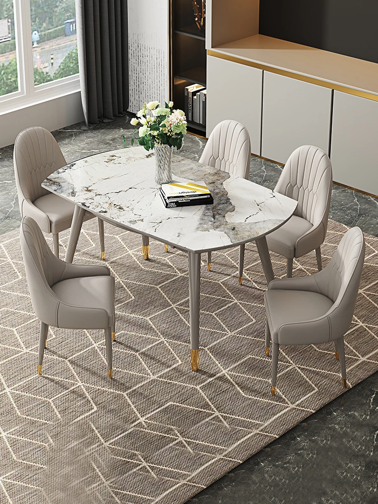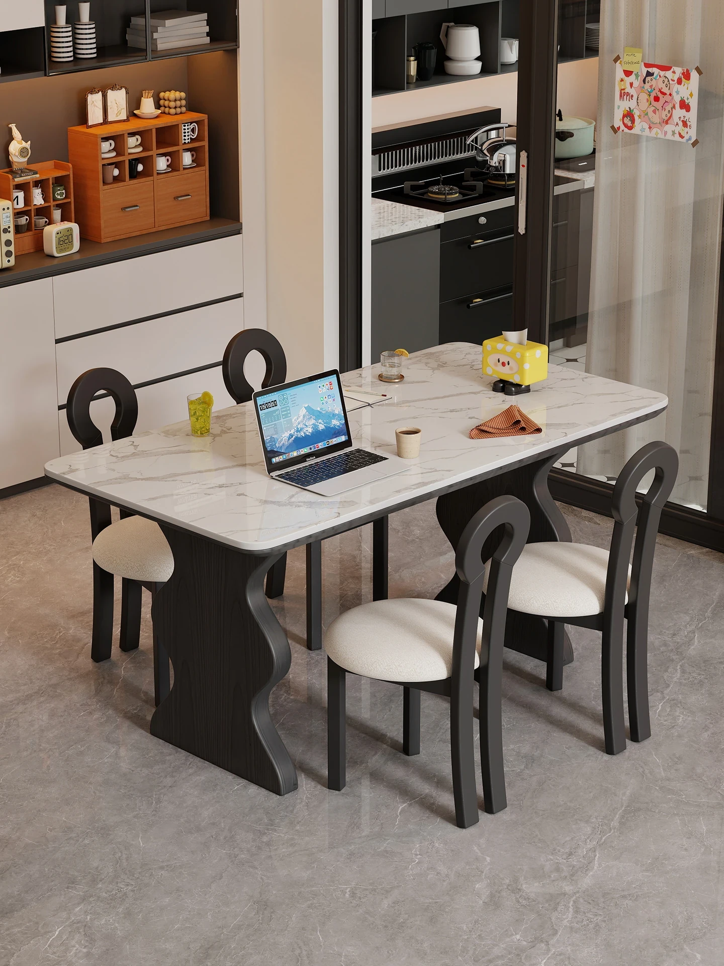 French Vintage Thickened Rock Plate Dining Table and Chair Set - Modern Minimalist Luxury for Small Spaces, Rectangular Dining Table Perfect for Home Use