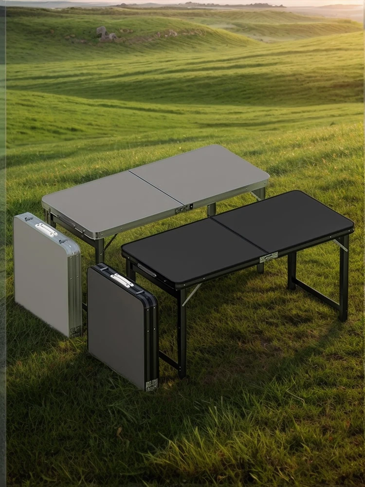 Portable Folding Aluminum Camping Picnic Table and Chairs - Rectangular Outdoor Table for Night Markets and Street Vendors