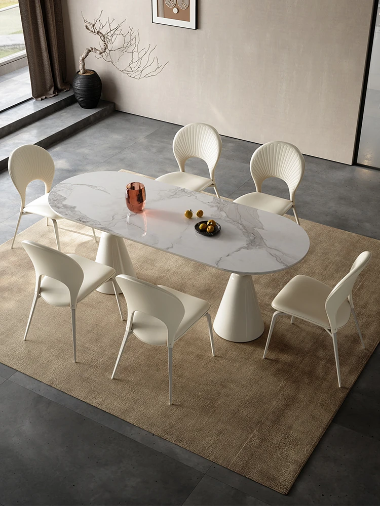 Modern French Cream Style Oval Dining Table Set for Small Spaces - Elegant and Minimalist Design for Home Use