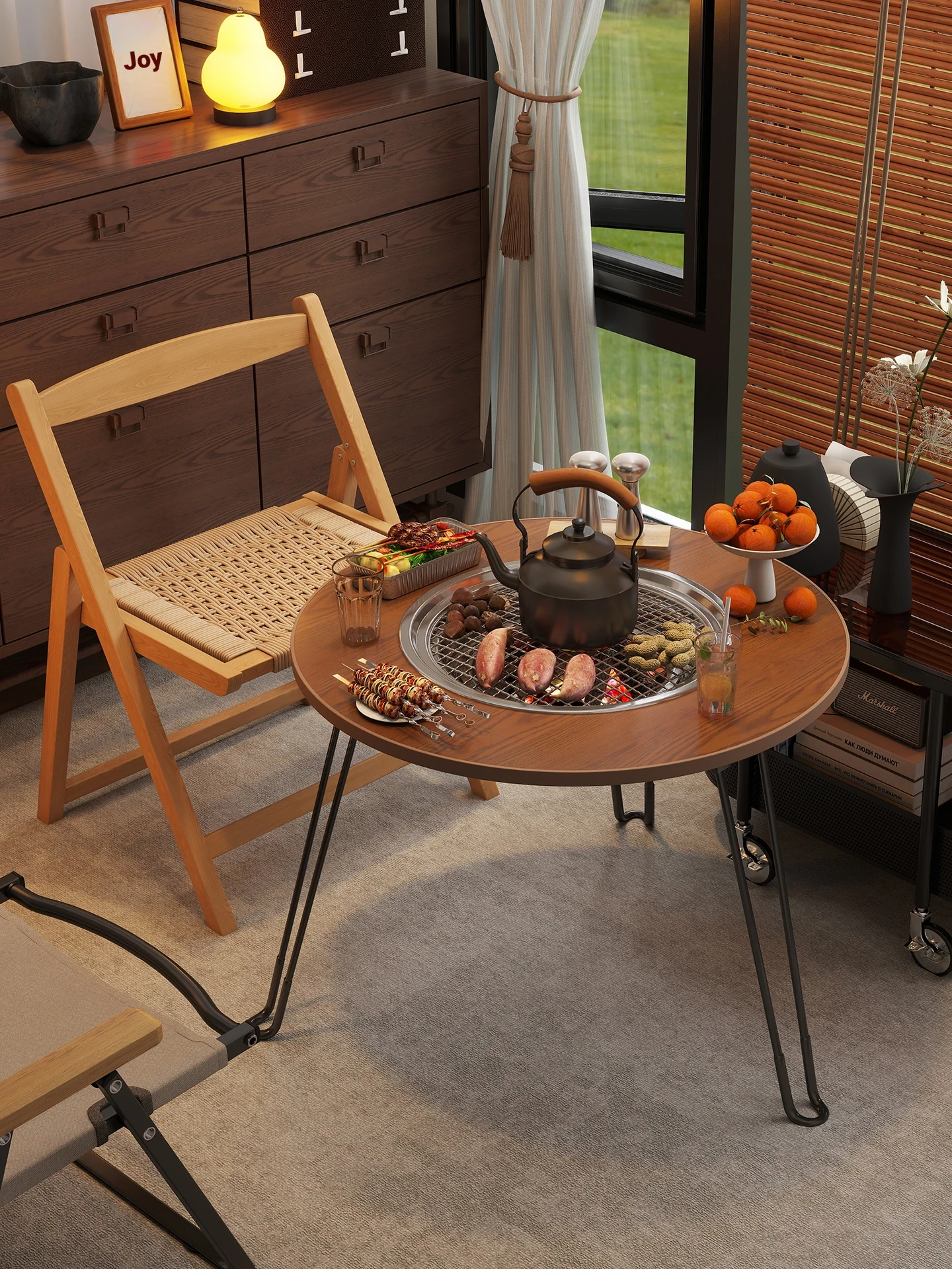 New Portable Fire Pit and Tea Brewing Set - Versatile Outdoor Folding Grill and BBQ Table for Camping and Family Gatherings - Perfect for Warm Gatherings and Delicious Barbecues!
