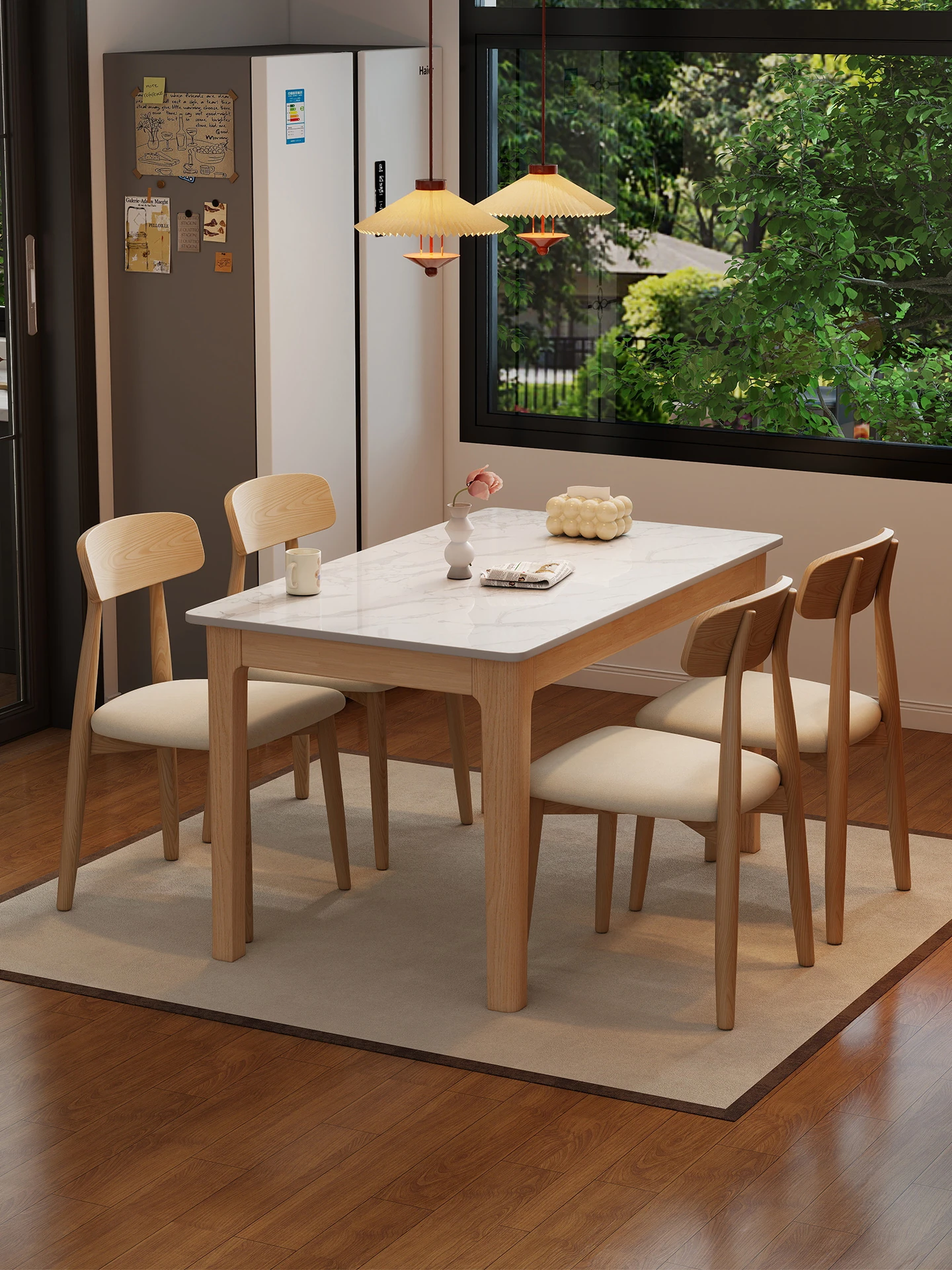 Modern Minimalist Solid Wood Dining Table Set - Rectangular Cream Style Table and Chairs for Small Homes, Perfect for Chic Dining Experiences