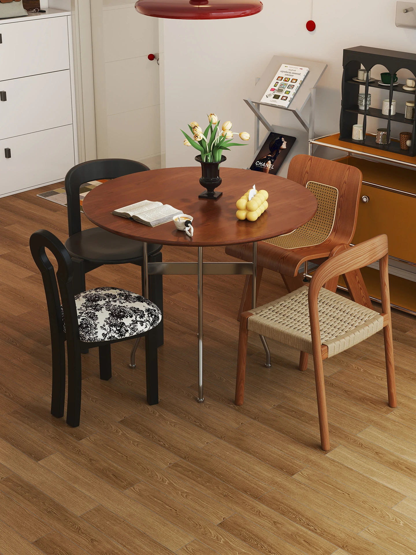 Vintage Solid Wood Round Dining Table for Small Homes - Modern Minimalist Stainless Steel Cafe Meeting Table