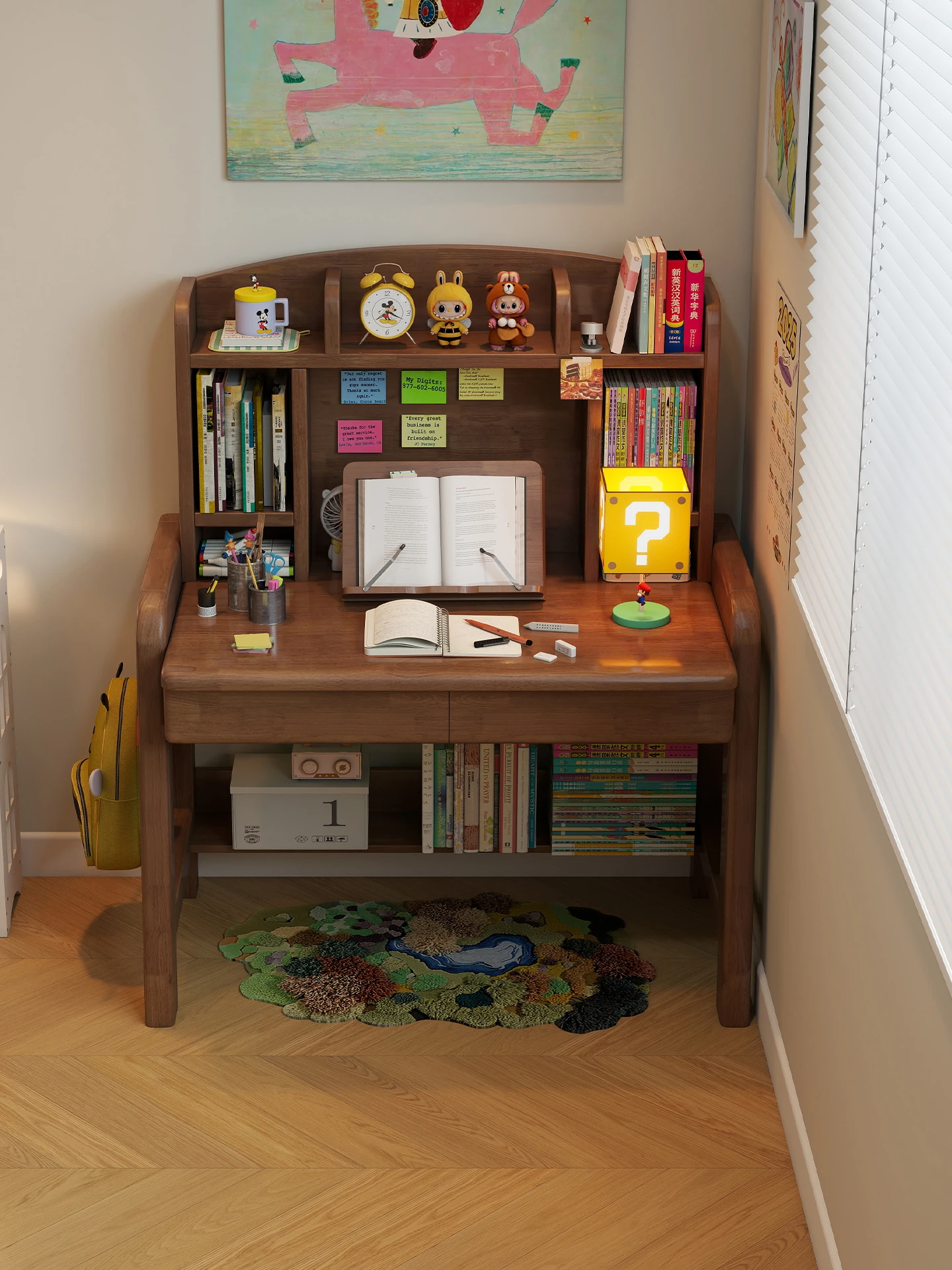 All-wood Study Desk and Bookshelf Combo - Adjustable Height for Home Use, Perfect for Middle and High School Students, Minimalist Writing and Computer Desk for Bedrooms