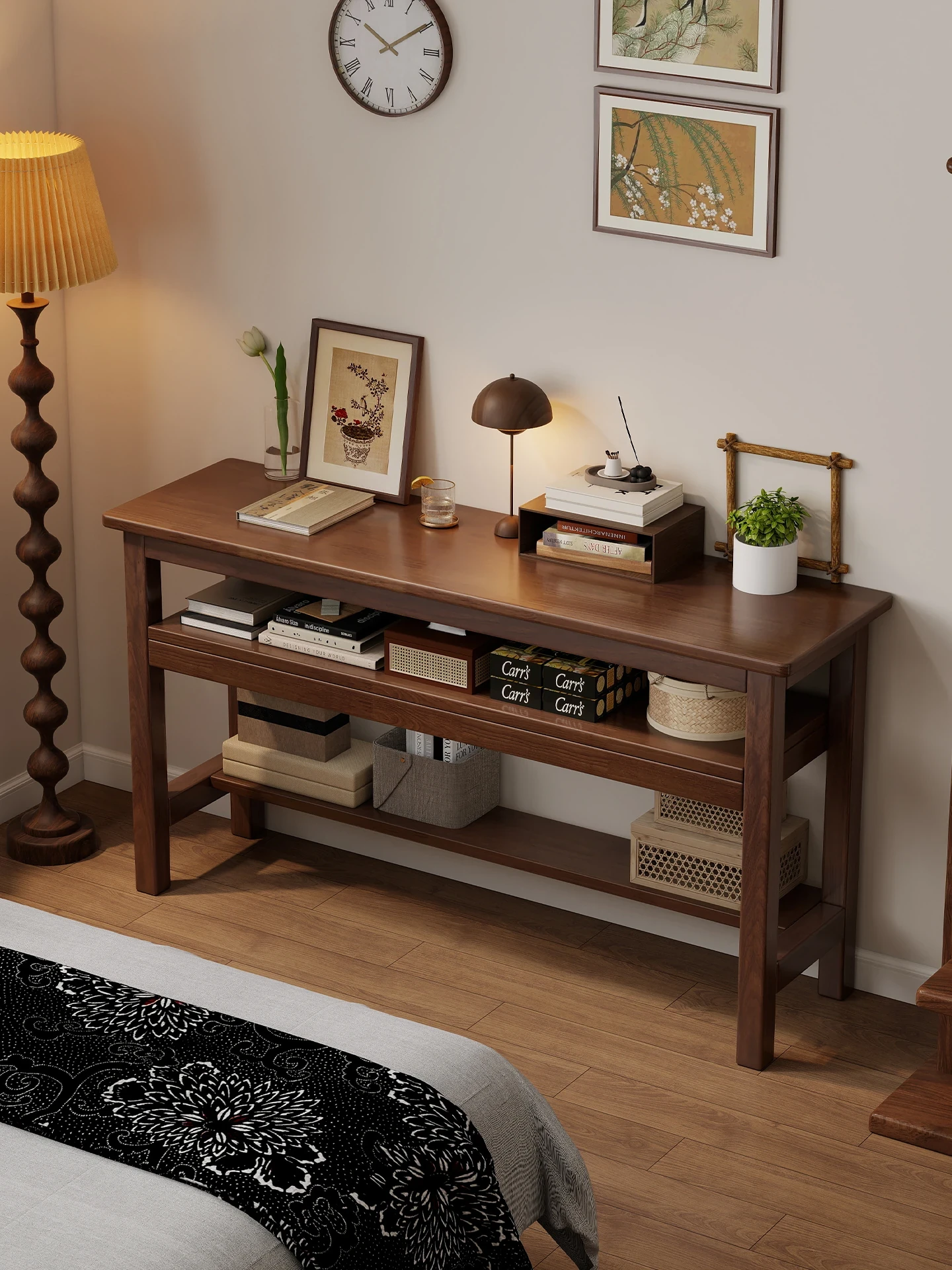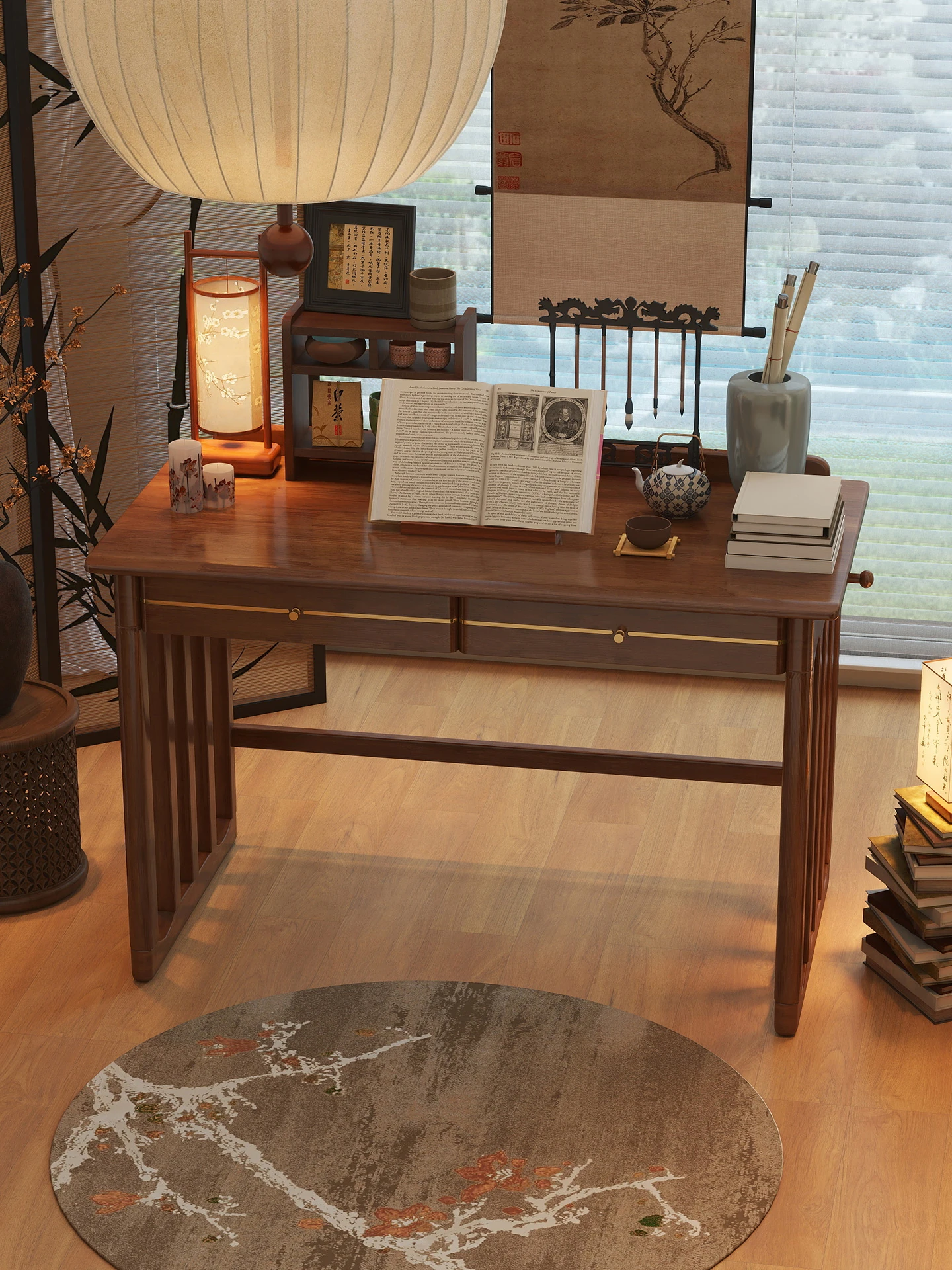 Modern Chinese Solid Wood Desk - Minimalist Home Office Computer Table, Writing Desk with Drawers, Perfect for Study, Balcony Tea Table & Tea Station