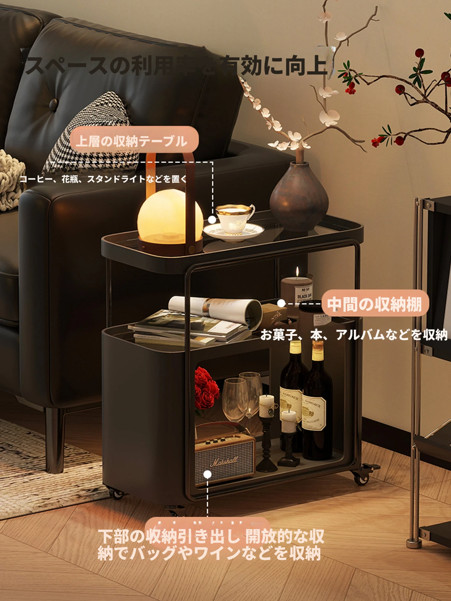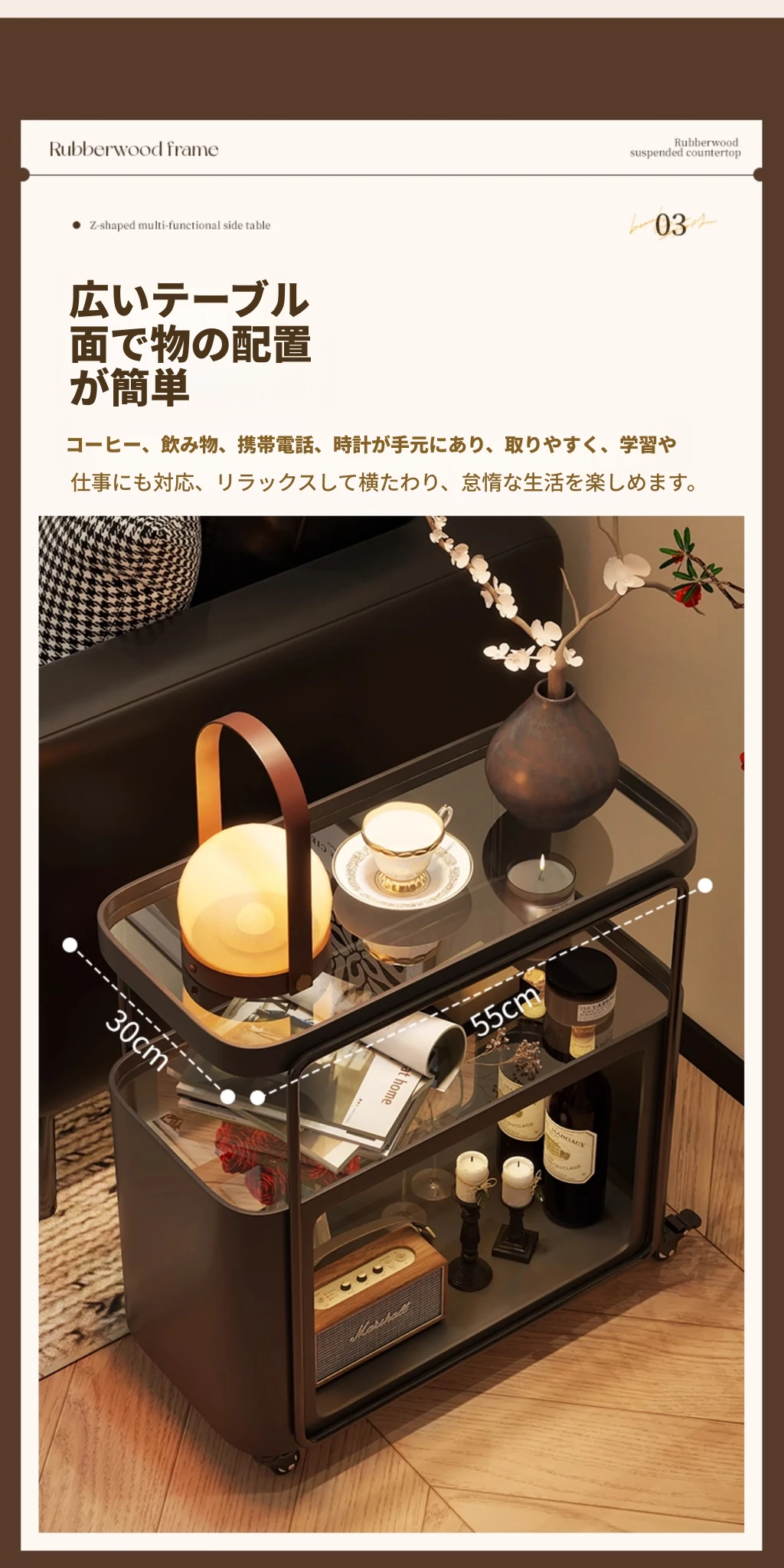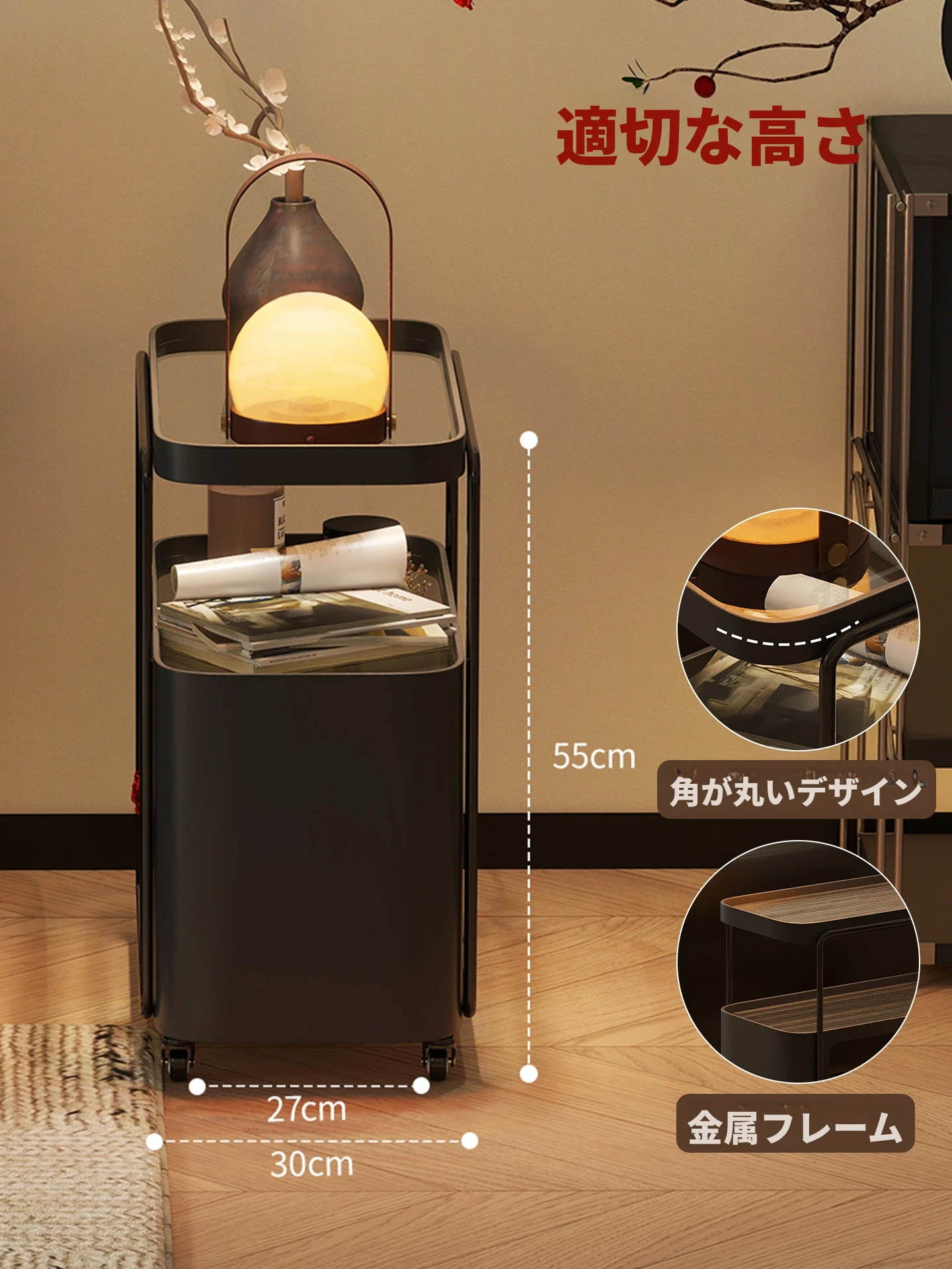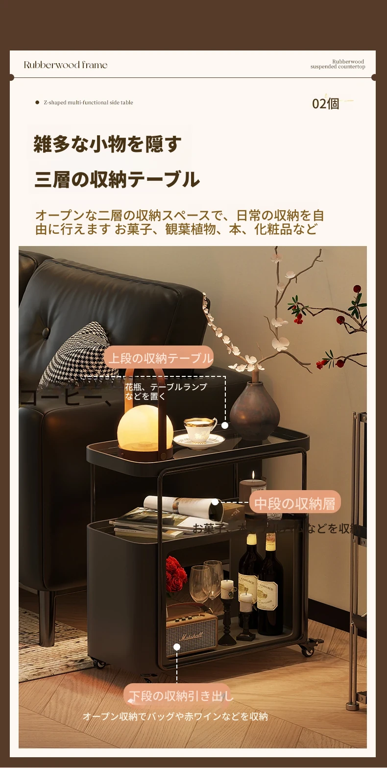 コンパクトでスタイリッシュなサイドテーブル - おしゃれなリビングにぴったり!移動可能なデザインで、小さなスペースでも活躍する高級感あふれるテーブル。寝室のナイトテーブルや、クリエイティブな収納ラックとしても最適です。